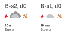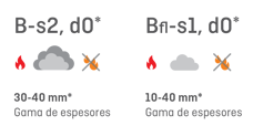 * La clase de reacción al fuego y el rango de espesores pueden variar según la planta de producción. Para obtener información detallada, póngase en contacto con el equipo de Sonae Arauco. |