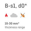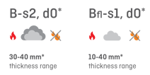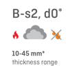 * Fire reaction class and thickness range may vary depending on the production plant. |