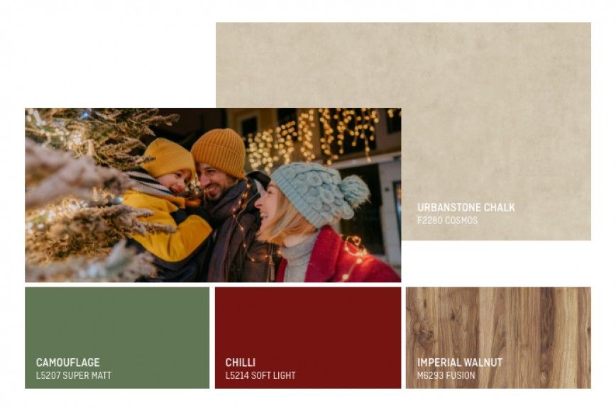 Também pode jogar com a luz e a cor para criar um ambiente diferente. Innovus Chilli (L5214) conecta-nos à natureza com a sua cor terrosa intensa e combina na perfeição com madeira natural e elementos artesanais. Camouflage (L5207) é a opção ideal para um design ainda mais natural e acolhedor com a sua tonalidade verde intensa, mas tranquilizante, que confere uma nova luminosidade às paletas de cores tradicionais da época natalícia.