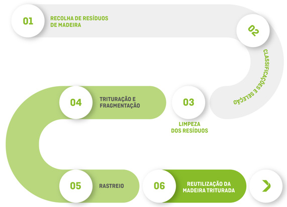 Ao reciclar madeira pós-consumo, aproveitamos todo o potencial dos resíduos - sejam de origem industrial ou municipal - prolongando assim o seu ciclo de vida e a retenção de CO2 associada a esta matéria-prima natural.